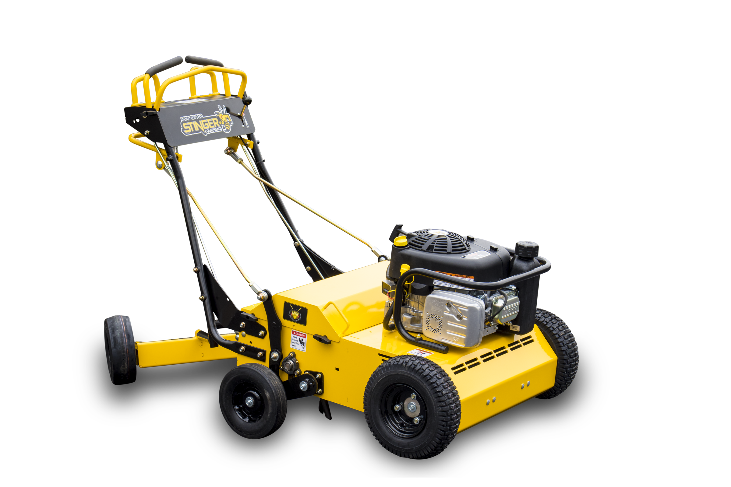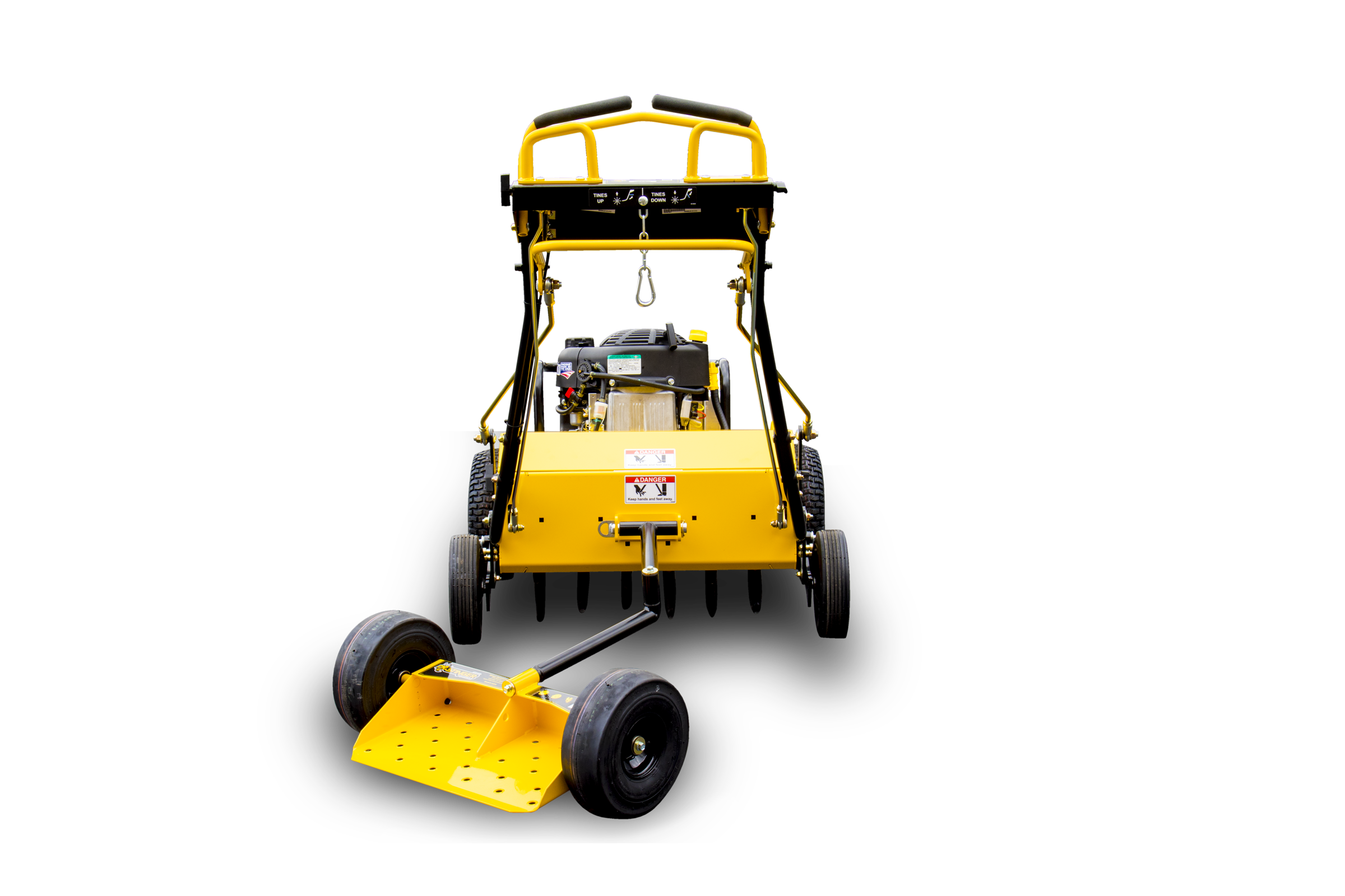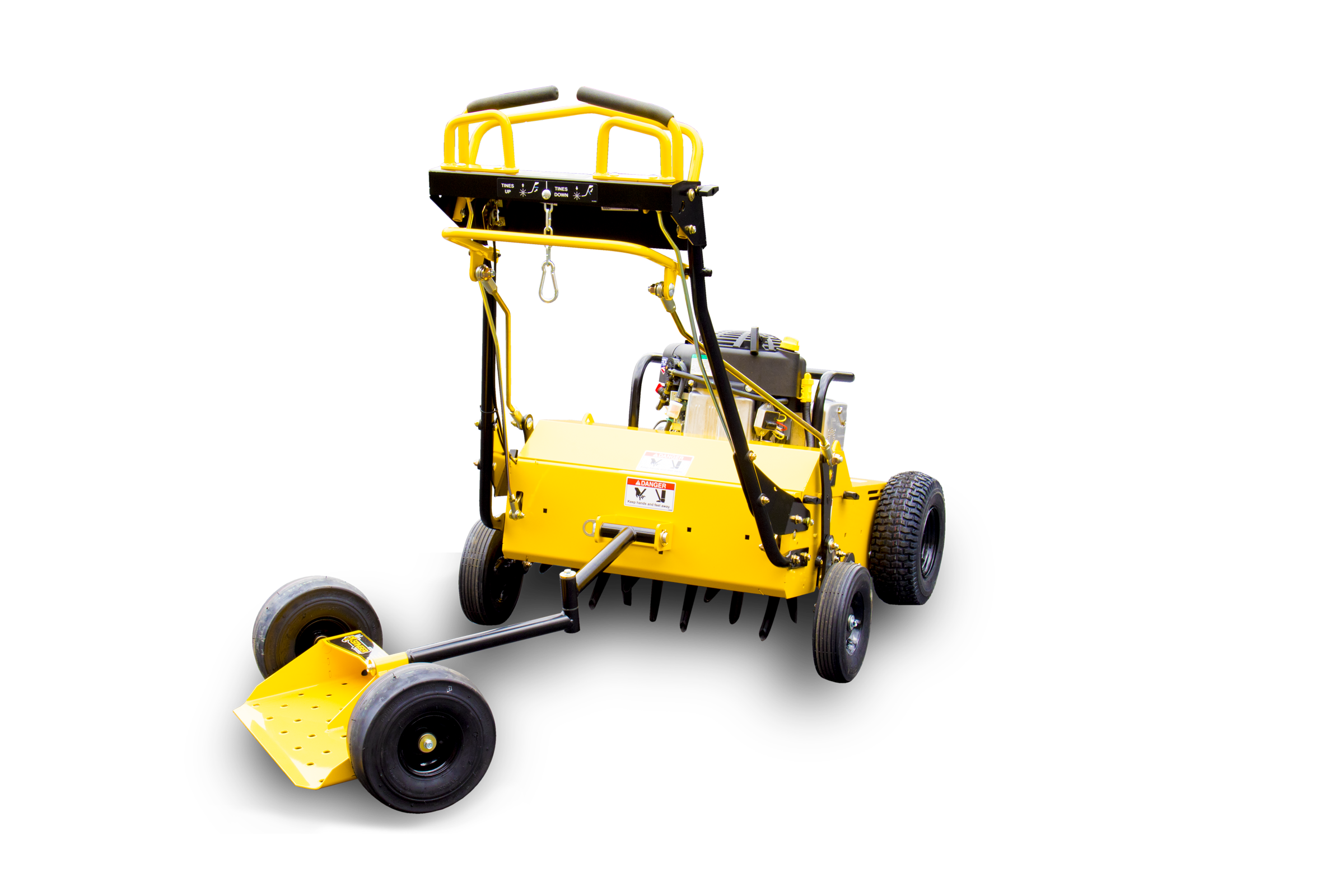 THE EZ-AER FEATURES A HYDROSTATIC DRIVE AND SEGMENTED TINES FOR SMOOTH AND EASY OPERATION.