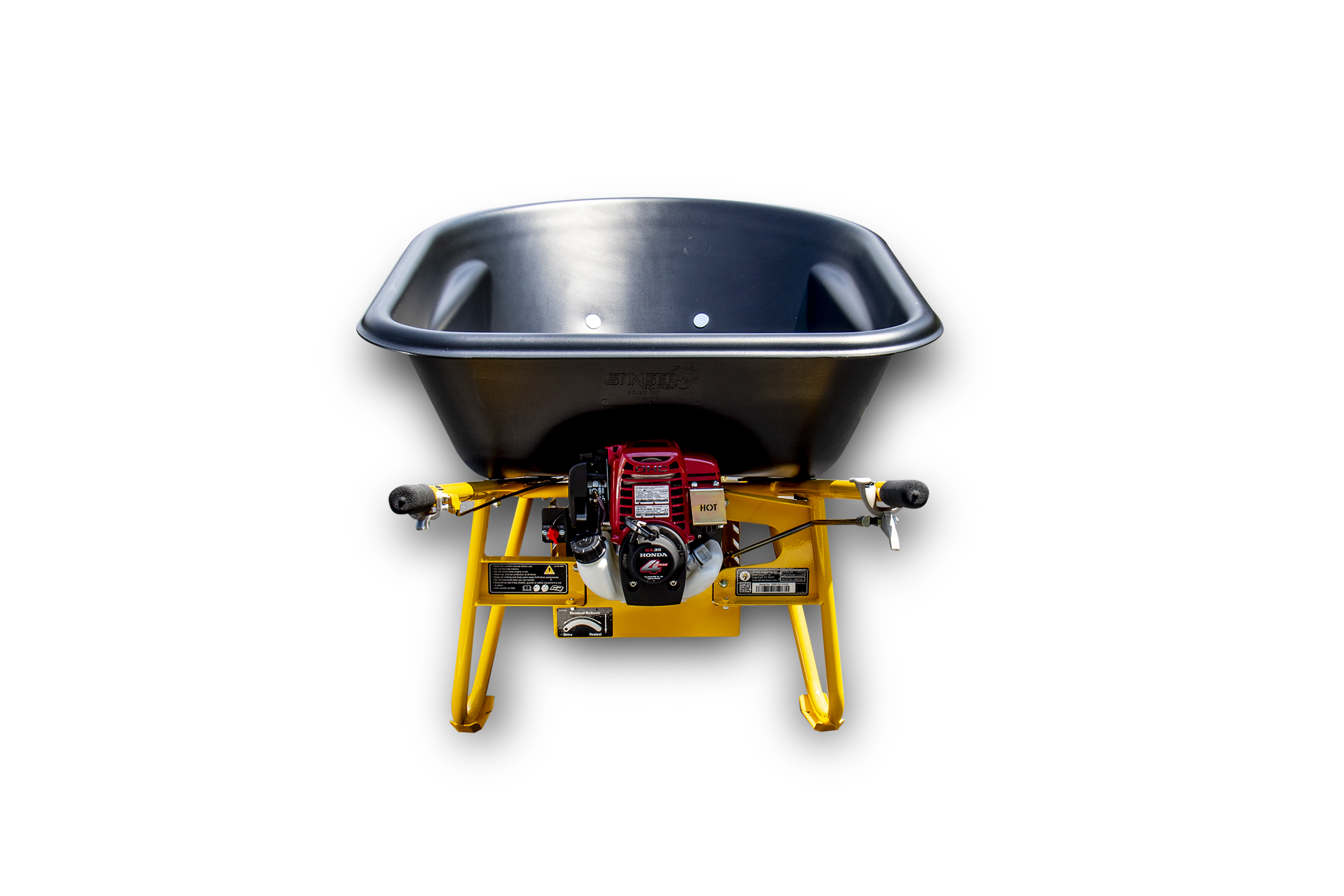 Stinger’s GOBARROW 9200 is one of the most versatile wheel barrows in the industry. A Honda engine and a smooth hydro transmission increase hauling capacity, while reducing operator fatigue. Wide single wheel design offers easy maneuverability in tight areas and load stability.